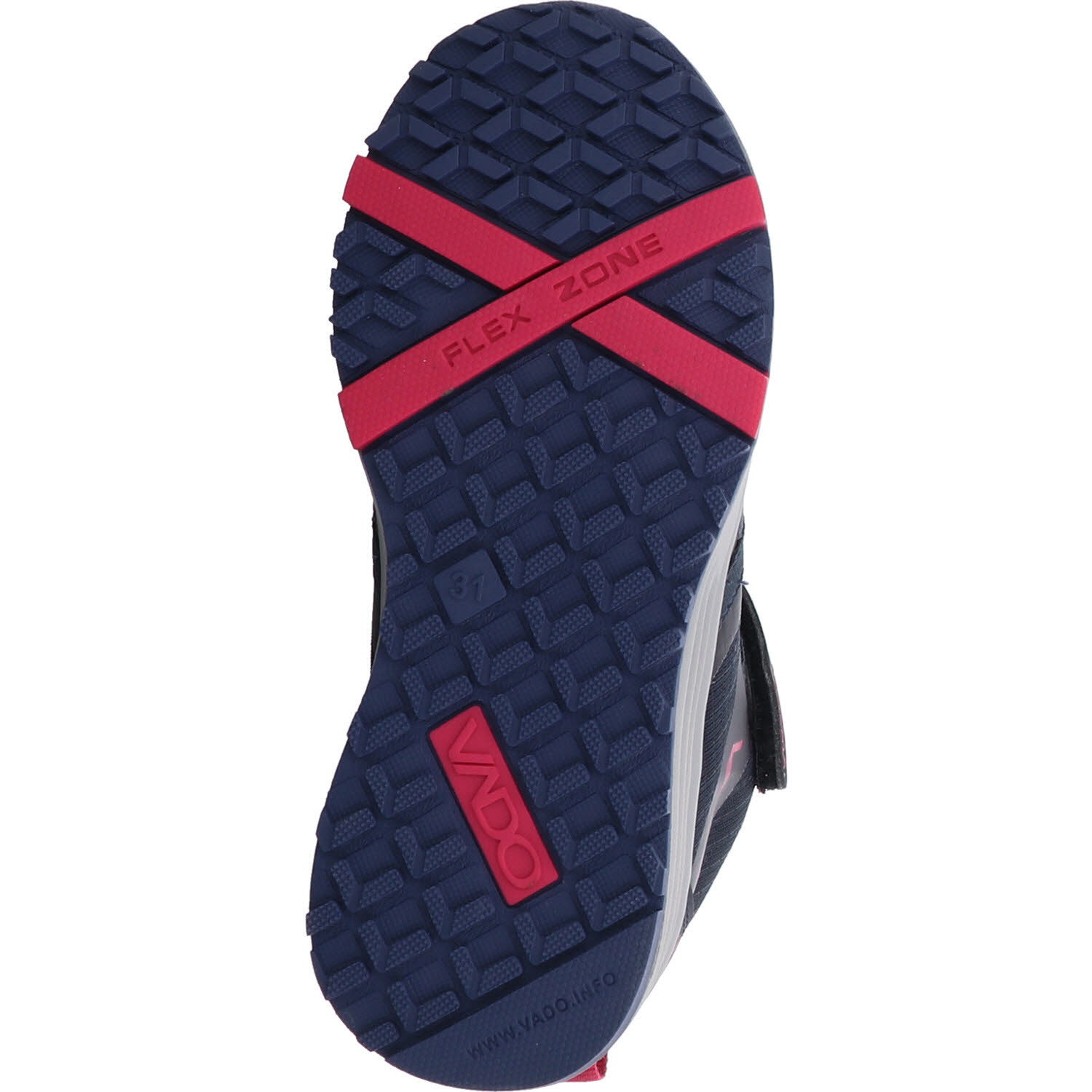 Der Schuh hat eine Laufsohle aus Gummi. Die sorgt für besseren Halt und die VADO X Flex-Zone im vorderen Bereich der Sohle unterstützt nachweislich eine gesunde Entwicklung der Ganglinie.