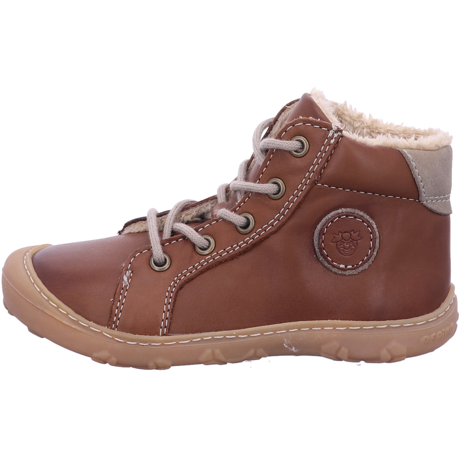 Moderne Boots GEORGIE von PEPINO für warme Füße im WinterDie bequemen Kinderschuhe GEORGIE begeistern Jungen und Mädchen beim Laufenlernen mit einer extrem weichen Sohle aus Naturkautschuk. Zudem sorgen die Schnürsenkel, die durch vier Ösen verlaufen, für einen sicheren Halt bei jedem Schritt. Die Unisex Boots sind mit einer warmen Einlegesohle Vildona gestaltet, die sich zum Lüften mühelos aus den Schuhen herausnehmen lässt. Das Obermaterial ist aus echtem Leder Oslo gestaltet, das nach dem Spaziergang an der kalten Luft rasch wieder von Scheeresten und anderen Verschmutzungen befreit ist. Das sportive Modell hat eine runde PEPINO Applikation auf der Seite.